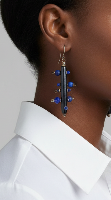 Gemstone Bantu Knot Earrings: Lapis
