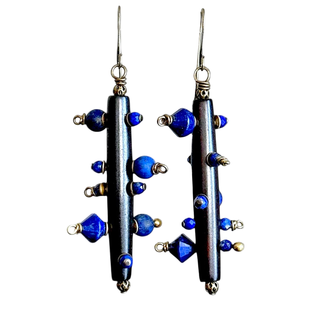 - Bead/stone/ composition: horn, lapis, brass