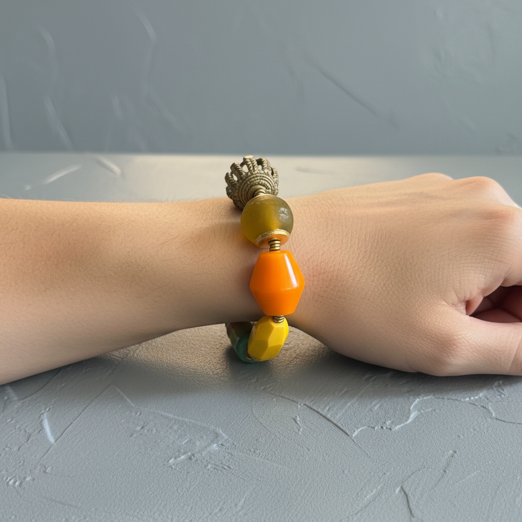 This bracelet stands alone, a deliberate interplay of color, texture, and form inspired by African adornment. Every detail is meant to be seen, felt, and remembered, for those who live fully and refuse to blend in.