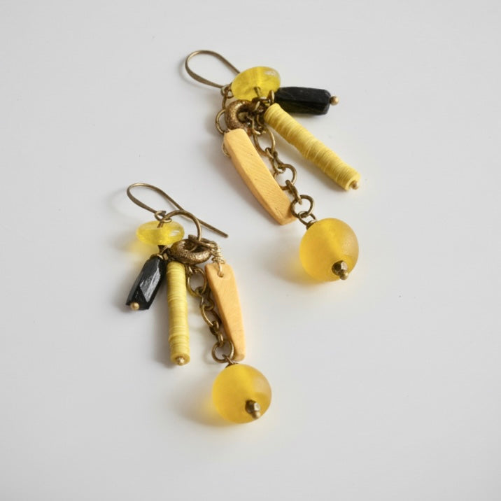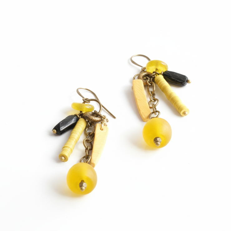 • Bead/stone/ composition: tourmaline, recycled glass, recycled vinyl, coconut shell, and brass