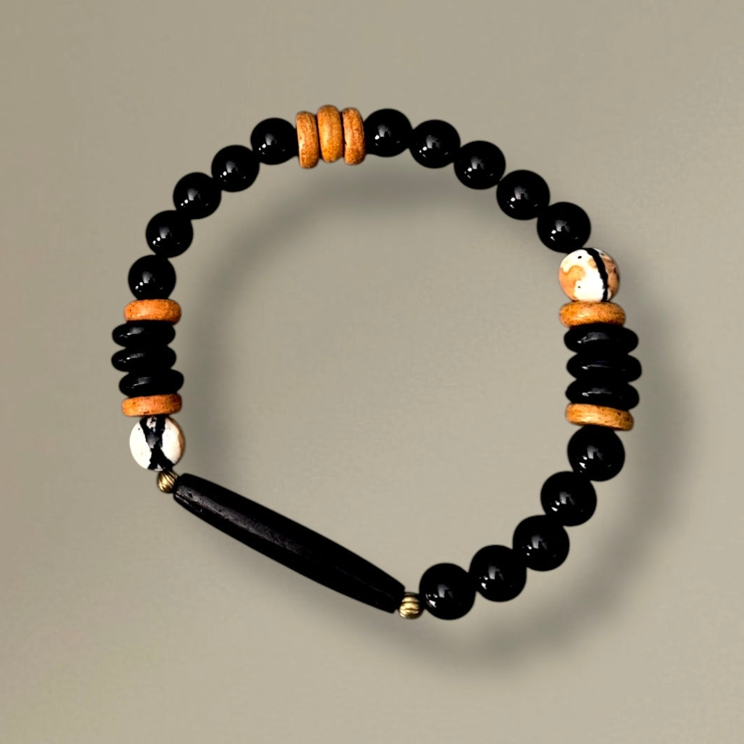 Introducing the Sable Sand Bracelet: a refined men’s bracelet crafted from smooth matte black agate and warm, natural wood beads. Designed for the man who values simplicity, strength, and subtle style, this bracelet pairs rich sable tones with soft sand neutrals for a look that’s both modern and grounded. Perfect as a holiday or special-occasion gift, this bracelet is a great choice for husbands, partners, and sons, who appreciate handcrafted, natural materials and quietly elevated design.